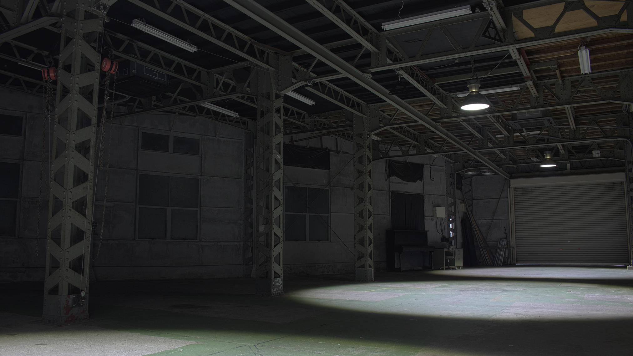 東京都豊島区の倉庫・工場・廃墟・ガレージ系撮影スタジオ 倉庫・工場・廃墟・ガレージのE号棟(約196平米:約59坪)、控室・機材庫(約87平米:約26坪)